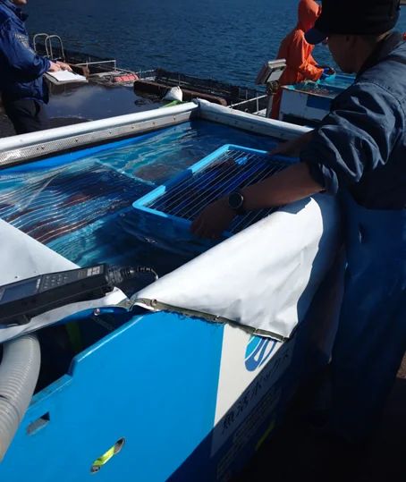 養殖場での積み込み作業(三重県尾鷲市)