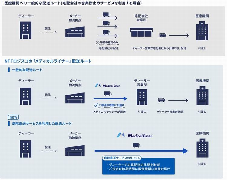 NTTロジスコは3月16日、医療機器共同配送サービス「メディカルライナー」に関し、度新たに「病院直送サービス」の提供を開始したと発表した。