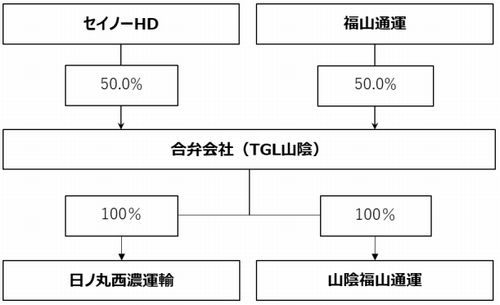 山陰地域は人口減少で物流効率化が急務となっており、両社グループが合弁でエリアの物流ネットワークの最適化・高度化を図る。合弁会社の下に日ノ丸西濃運輸と山陰福山通運が収まる形に移行する。