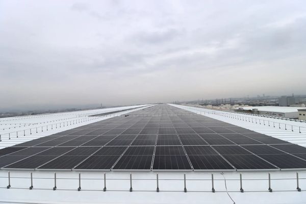 屋上には太陽光パネルを設置。発電容量は888.8kWで、初年度想定の年間発電量は合計約1600MWhとなる見込み。生み出した電力は施設内で自家消費する。