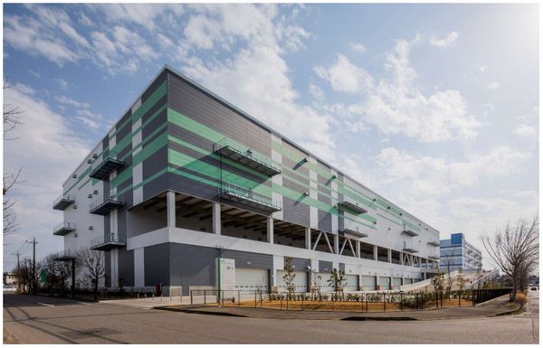 千葉県柏市の「沼南風早工業団地」内に位置し、24年2月に竣工した延床面積約3万122㎡の4層スロープ型物流施設。国道16号線に近接し、都心部をはじめ首都圏全域への広域配送に適した交通利便性の高い立地。梁下有効高5.5m、床荷重1.5t/㎡、11.5m×10.0mの柱スパンを確保。多様な物流ニーズに対応可能な高い汎用性を備えている。荷物用エレベーター4基、垂直搬送機4基、ドックレベラー4基、トラックバース63台分を実装。