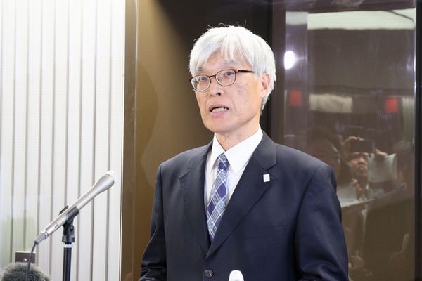 会談後、報道陣の取材に応じる藤井社長