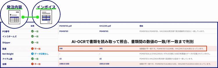 さらに、AIインボイス照合機能を活用し、メーカーごとに異なる書類フォーマットの確認作業を自動化・標準化。作業時間の最大50%削減に加え、担当者の心理的負担も大幅に軽減できたという。