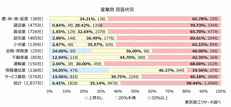 東京商工リサーチは4月14日、原油価格高騰に関する企業向けのアンケート調査結果を公表した。
