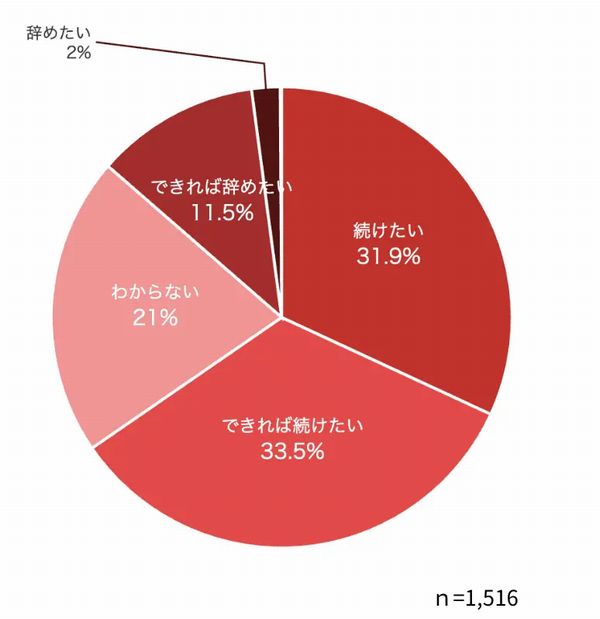 「続けたい」(31.9%)と「できれば続けたい」(33.5%)が6割以上を占め、Hacobuは賃金面の課題が浮き彫りとなる半面、職業としてのドライバーへの定着意向の高さが示されたとみている。