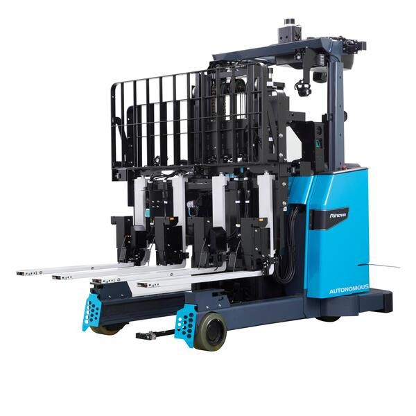 豊田自動織機トヨタL&Fカンパニーは4月15日、トラックへの荷役作業を自動化する自動運転フォークリフト「Rinova Autonomous」(リノバ オートノマス)に関し、新たに4本フォーク仕様を追加し、4月16日に発売すると発表した。
