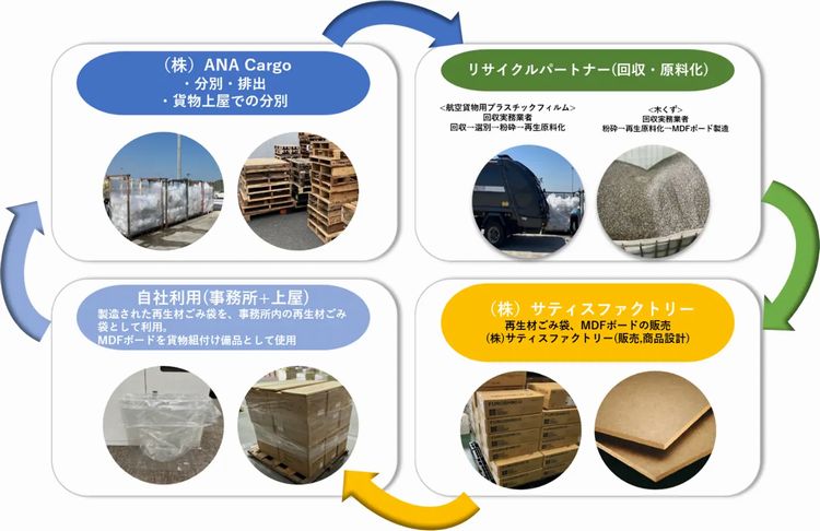 ANA Cargoと廃棄物の再資源化事業を手掛けるサティスファクトリー(東京都中央区八丁堀)の両社は4月24日、航空貨物輸送の際に出る廃棄物の削減に向け、使用済みプラスチック類を資源として再利用する資源循環を開始したと発表した。