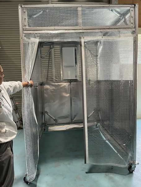 工場内休憩所、工場内高温環境(乾燥炉、電気炉、ボイラーなど)周辺、建設・土木工事現場、物流センター、農業関係、運動会、屋外イベント、スポーツ大会、ゴルフ場、商業施設などで倒れた熱中症患者の即時休憩用、災害時避難場所と幅広い用途を想定している。