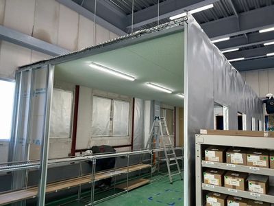 のれん式・ワンタッチ開閉の出入口で、入退室がスムーズにできるよう工夫している。