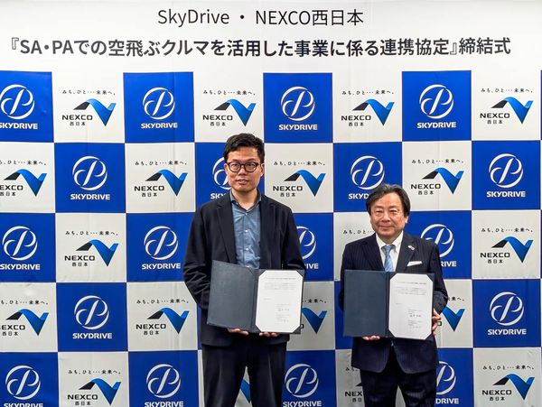 SkyDriveとNEXCO西日本(西日本高速道路)の両社は4月24日、「空飛ぶクルマ」を高速道路のSA・PAで活用できるかどうか検討するため、連携協定を締結したと発表した。