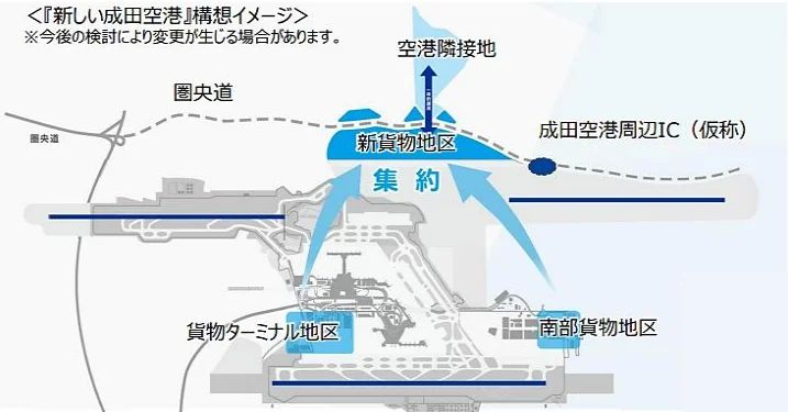 NAAは国土交通省などと連携し、「新しい成田空港」の実現へ新貨物地区を整備する構想を進めており、「東アジアの貨物ハブ」となることを目指している。