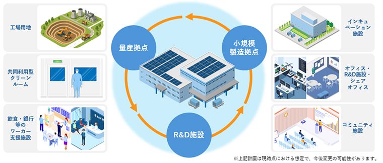①R&D施設、インキュベーション施設、オフィス・シェアオフィス、工場用地等、半導体産業に必要な「アセット」を整備